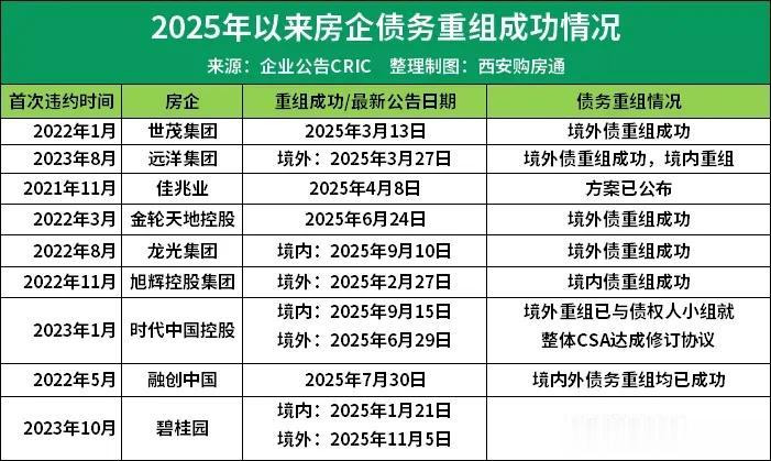 除此之外,也有众多房企涅槃重生,包括融创和碧桂园在内,今年已有9家房企重组方案获批,有世茂、远洋、佳兆业等。