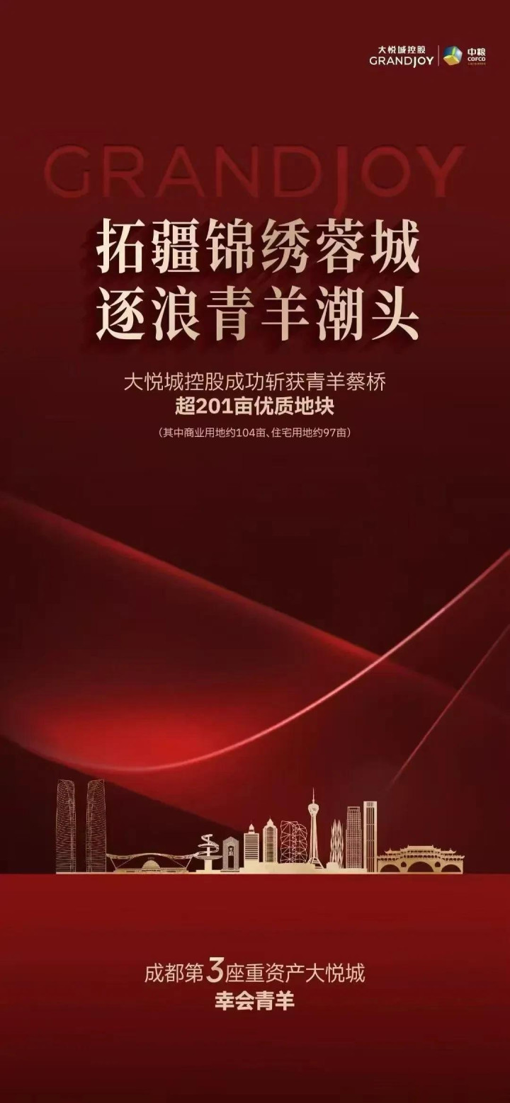 就在11月19日,大悦城地产的间接全资附属公司,以26.5亿元竞得位于成都青羊区的一处土地使用权。